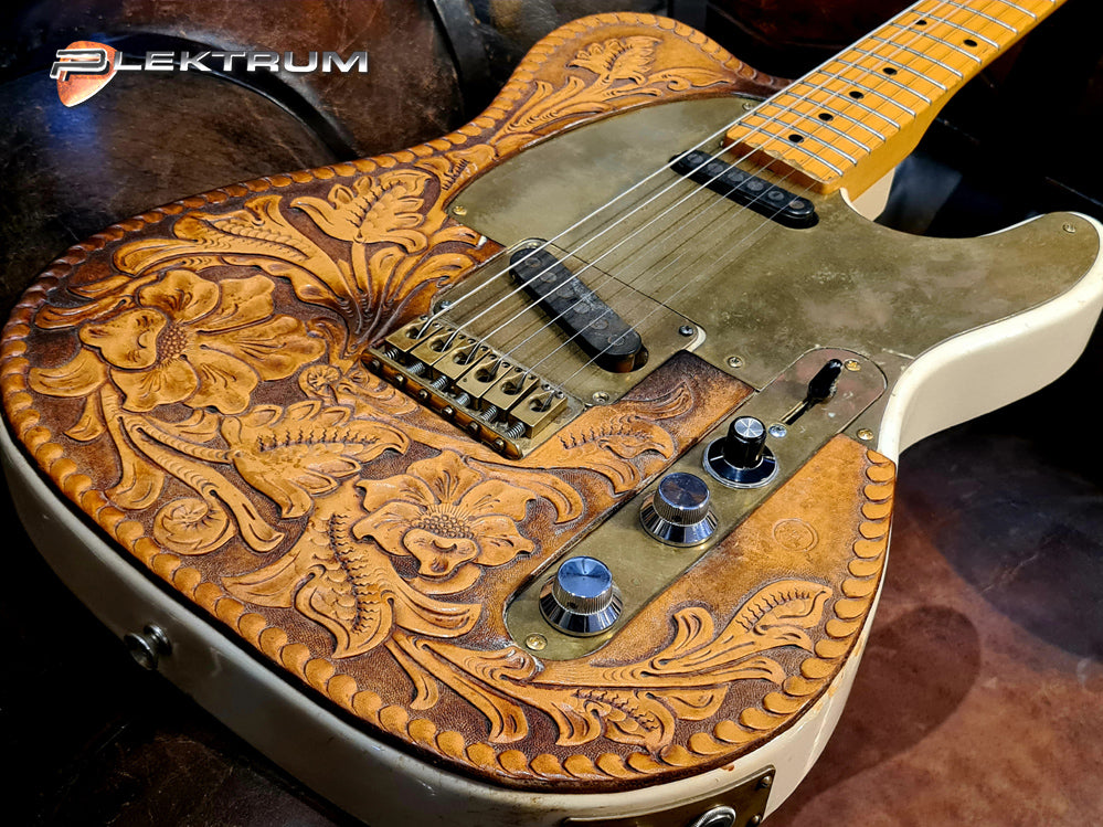 Flot og enestående Japansk håndlavet / udsmykket TL Country el-guitar i læder og messing.